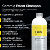 Ceramic Effect Shampoo – шампунь для ухода с защитным эффектом для ручной мойки. Он очищает и запечатывает поверхности на длительное время всего за один этап мойки. Новая формула для очистки и ухода создает дополнительное защитное покрытие и, таким образом, обеспечивает гладкость, тактильную мягкость поверхности с водоотталкивающим эффектом, а также придает ей глубокий блеск. Быстрый и простой в использовании шампунь идеально подходит для уже обработанных поверхностей, например, средствами Ceramic Body или Spray Sealant, и может увеличить срок службы соответствующего покрытия. Имеет приятный, свежий, ягодно-миндальный аромат.