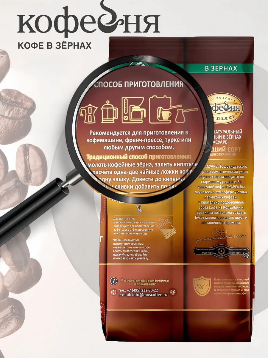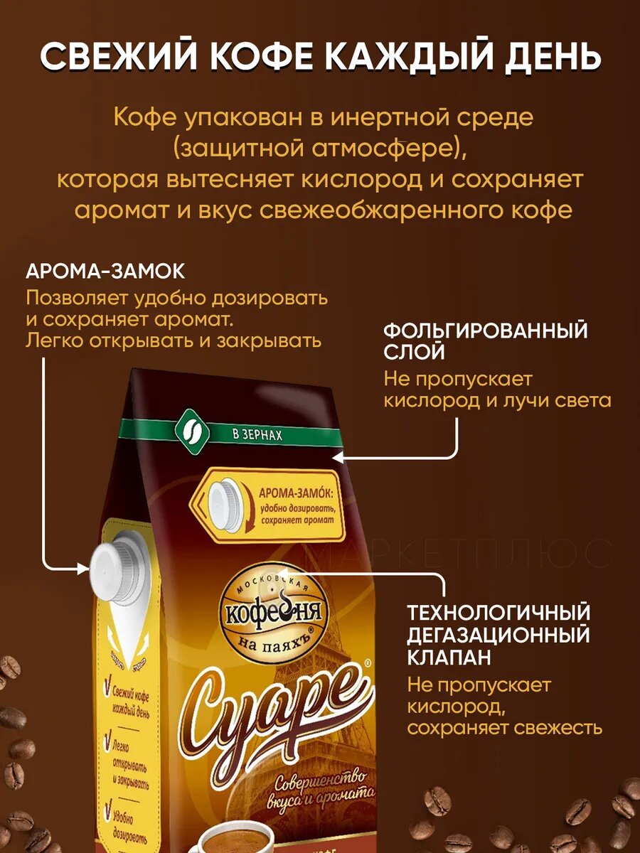 Кофе Московский кофейня на Паяхъ «Суаре», в зернах, арабика, робуста, 1 кг: сравнение цен, характеристики, фото, актуальное наличие и цены.