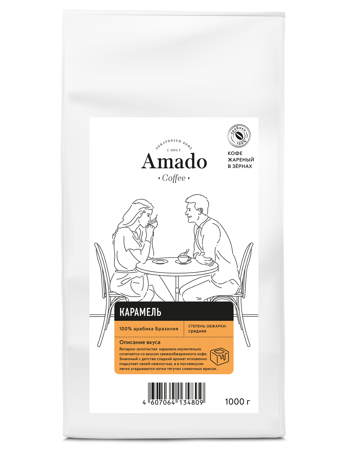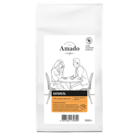| Состав | Натуральный кофе свежеобжареный в зернах 100% Арабика Бразилия, ароматизатор идентичный натуральному Карамель. |