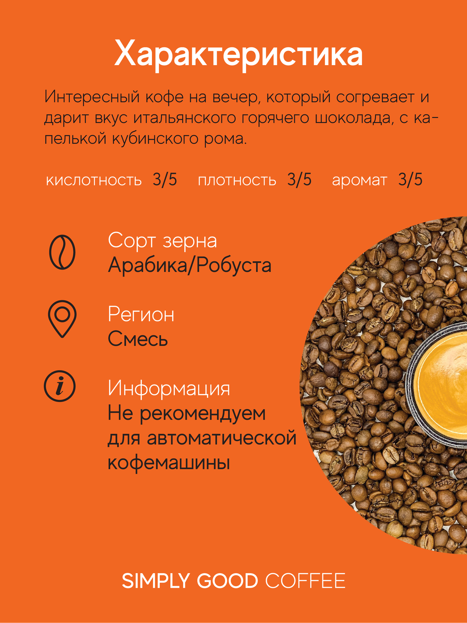 Simply Good Coffee. Мы сами привозим зерно с лучших кофейных плантаций разных стран, обжариваем его на инновационных ростерах воздушной обжарки, используем качественную многослойную упаковку с зип-локом и клапаном. Мы не позиционируем свой кофе как премиальный, а делаем качественный продукт доступным.