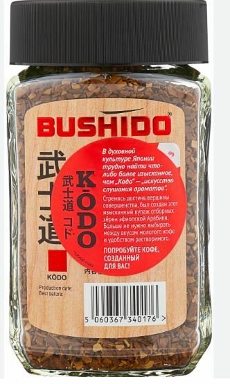 Кофе Бушидо Кодо 95 гр (Bushido Kodo) натуральный растворимый сублимированный стеклянная банка/Швейцария/