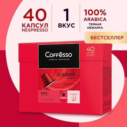 Купить Кофе Coffesso «Classico Italiano», 40 капсул по 5 г, с доставкой по всей России. Кофе Coffesso «Classico Italiano», 40 капсул по 5 г,: сравнение цен, характеристики, фото, актуальное наличие и цены.