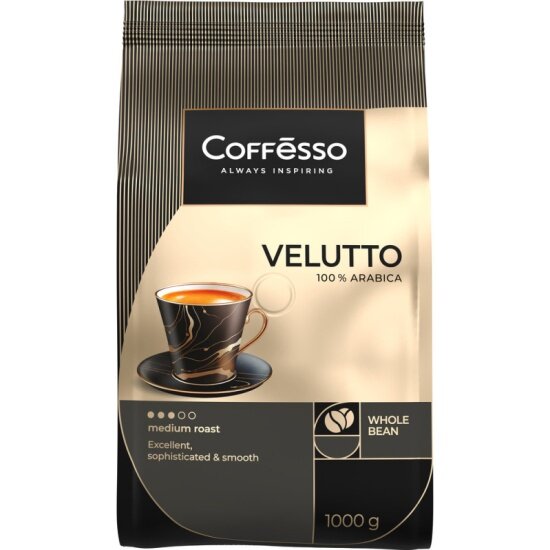 Кофе в зернах Coffesso VELUTTO — это изысканный выбор для истинных ценителей. Продукт весом 1000 г представлен в удобной упаковке, которая сохраняет свежесть и аромат. Артикул товара: 2187188.