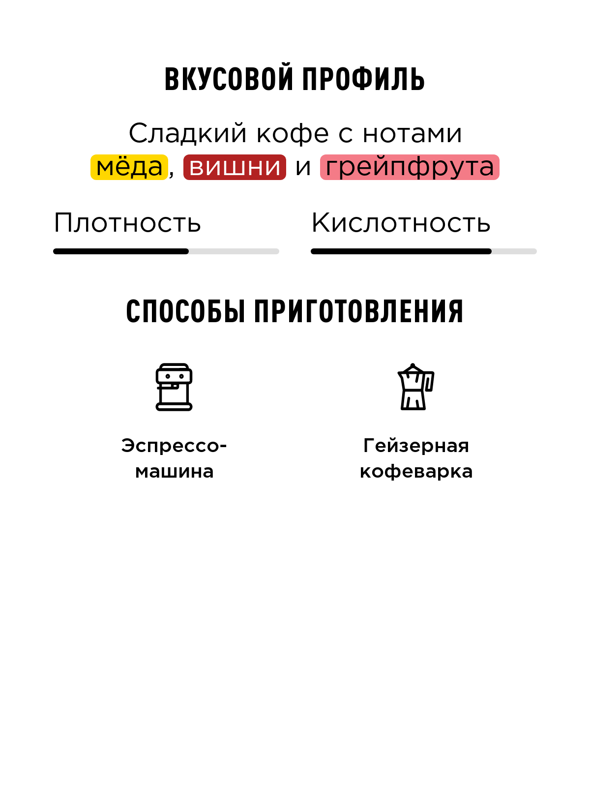 Сладкий кофе с нотами мёда, вишни и грейпфрута