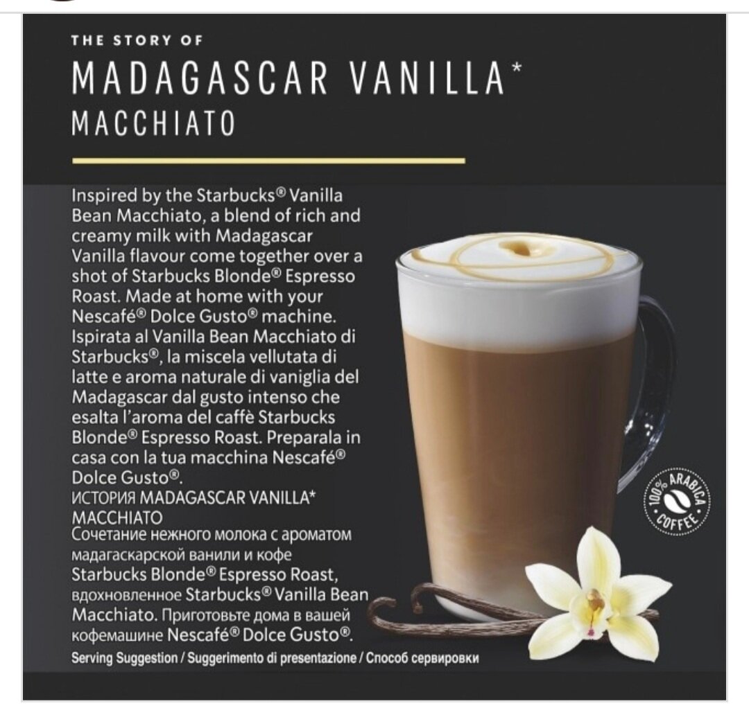 Кофе капсульный Starbucks Macchiato Madagascar vanilla macchiato для Dolce gusto Nescafe 12 капсул,6 порций: сравнение цен, характеристики, фото, актуальное наличие и цены.