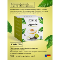Откройте для себя богатый мир кофе от бренда Field. Капучино в капсулах для кофемашин нескафе дольче густо обладает ярким молочным мягким вкусом и сливочной нежной пенкой. Насыщенный кофейный аромат и безупречный баланс вкусовых ноток в каждой кружке. Изготавливается из смеси оригинальных кофейных зерен средней обжарки без горечи. Арабика – 70%, робуста – 30%. Европейское качество в современном исполнении в вашей чашке. Капсульный мини формат сохраняет все свойства натурального жареного зерна мелкого помола. Позволяет насладиться идеальным вкусным напитком дома, в офисе и на работе. Порционный горячий напиток в наборе специально разработан для удобного и быстрого приготовления вашего любимого капучино с использованием кофемашины nescafe dolce gusto. В наборе - 3 упаковки по 16 индивидуальных капсул. 1 упаковка состоит из 8 капсул с кофе и 8 капсул с молоком. Набор рассчитан на 24 готовые порции. Объем каждой - 240 мл. Ароматизированный десертный напиток приносит удовольствие с каждым глотком. Для бодрящего утра, энергии в течение всего дня и активного вечера. Рассмотрите в качестве подарка мужчинам и женщинам. Подарочный вариант коллегам и кофеманам. Для ценителей и любителей жареного молотого ароматного кофе. Прекрасный знак внимания и заботы.