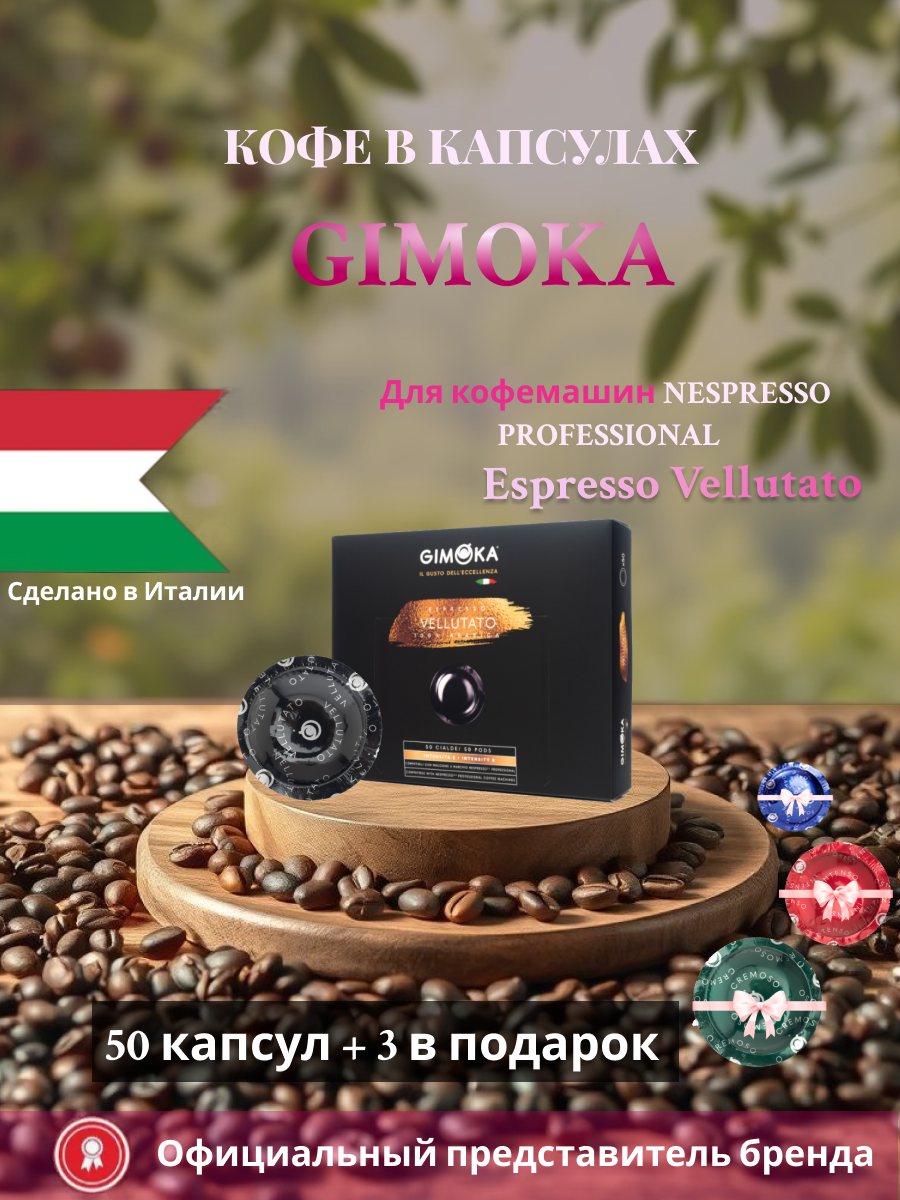 Купить Кофе капсулы Gimoka Vellutato для Nespresso Professional 50 шт+3 капсулы с доставкой по всей России. Кофе капсулы Gimoka Vellutato для Nespresso Professional 50 шт+3 капсулы: сравнение цен, характеристики, фото, актуальное наличие и цены.