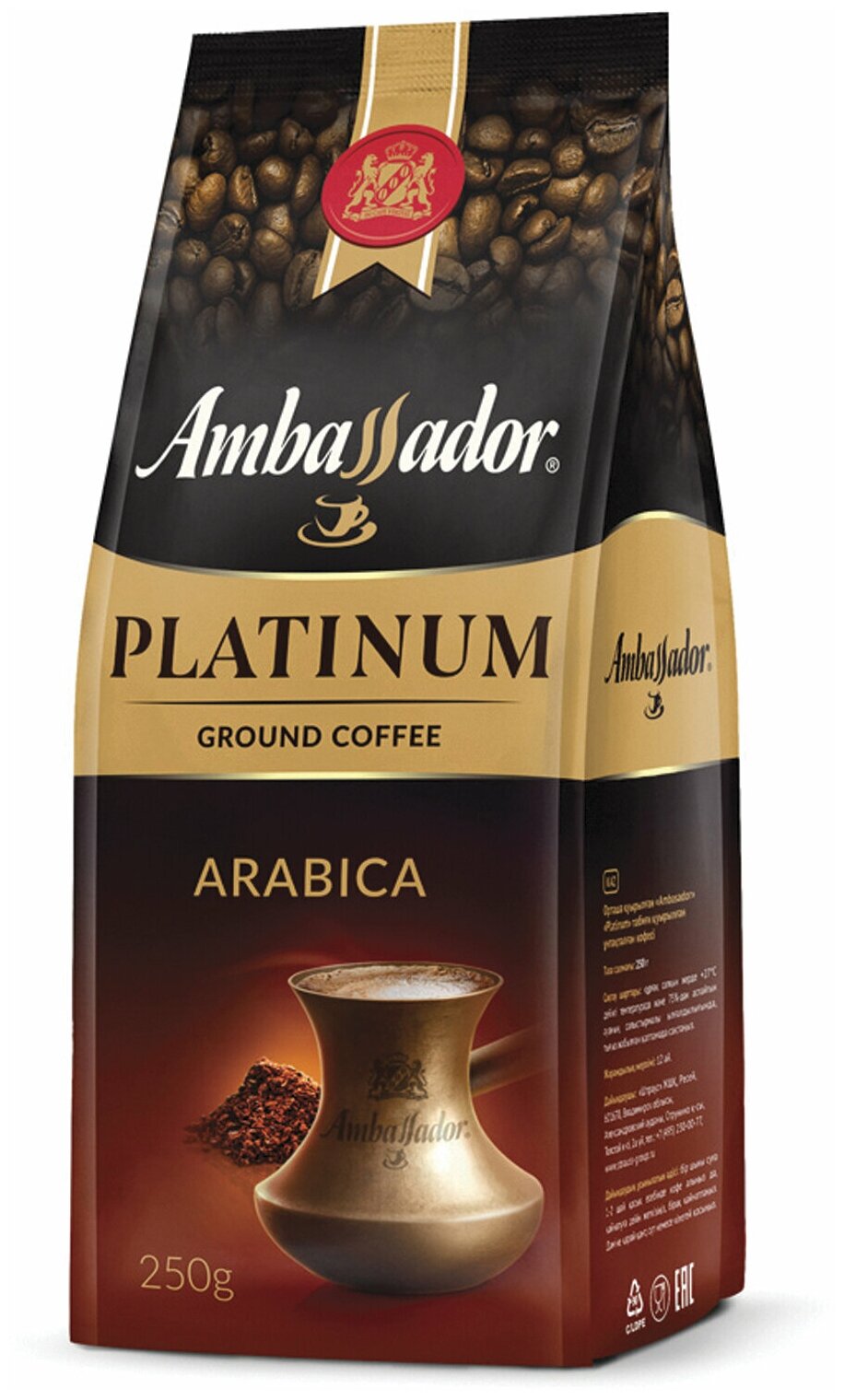Купить Кофе молотый AMBASSADOR «Platinum» 250 г, арабика 100% с доставкой по всей России. Кофе молотый AMBASSADOR «Platinum» 250 г, арабика 100%: сравнение цен, характеристики, фото, актуальное наличие и цены.