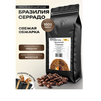 Натуральный молотый кофе Бразилия Серрадо 1000 г – 100% бразильская арабика. Эта бюджетная южноамериканская арабика сухой обработки, средней обжарки. Кофейные зерна некрупные, цвета молочного шоколада с ярким ароматом. Средний помол.