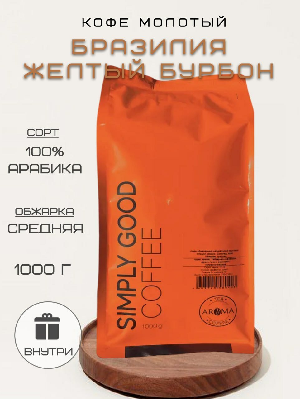 Натуральный молотый кофе Бразилия Жетлтый Бурбон 1000 г – это 100% бразильская арабика натуральной обработки. Моносорт средней обжарки. Зерна имеют оттенок молочного шоколада и яркий аромат. Помол средний.