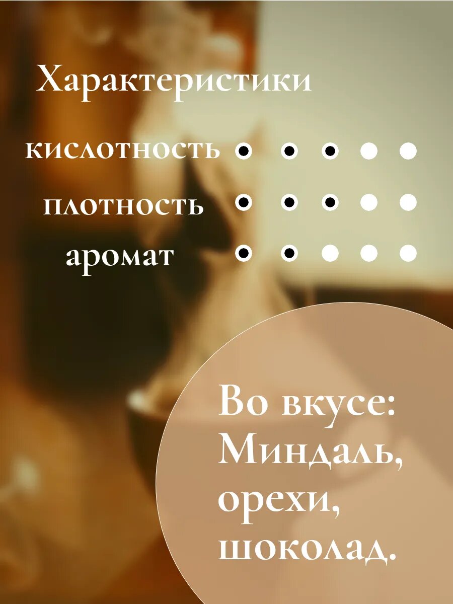 Вкус. Со средней кислотностью и манящим ореховым ароматом. Напитки получаются лёгкими, с шоколадным вкусом, который обогащается нотами сухофруктов и миндаля в процессе остывания.