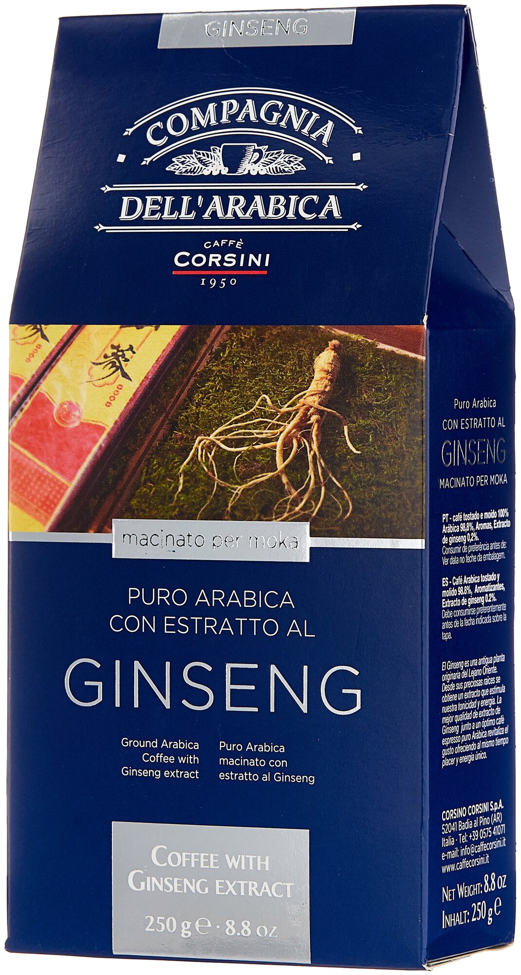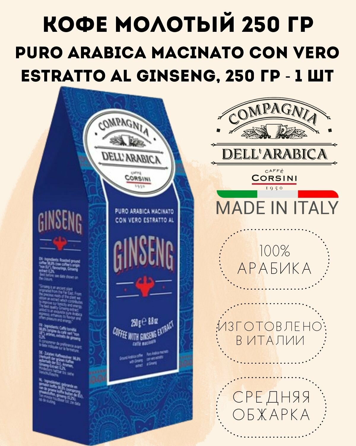 Кофе молотый Compagnia Dell’Arabica Puro Arabica Con Estrarro Al Ginseng(Дель Арабика Женьшень), 250 гр.: сравнение цен, характеристики, фото, актуальное наличие и цены.