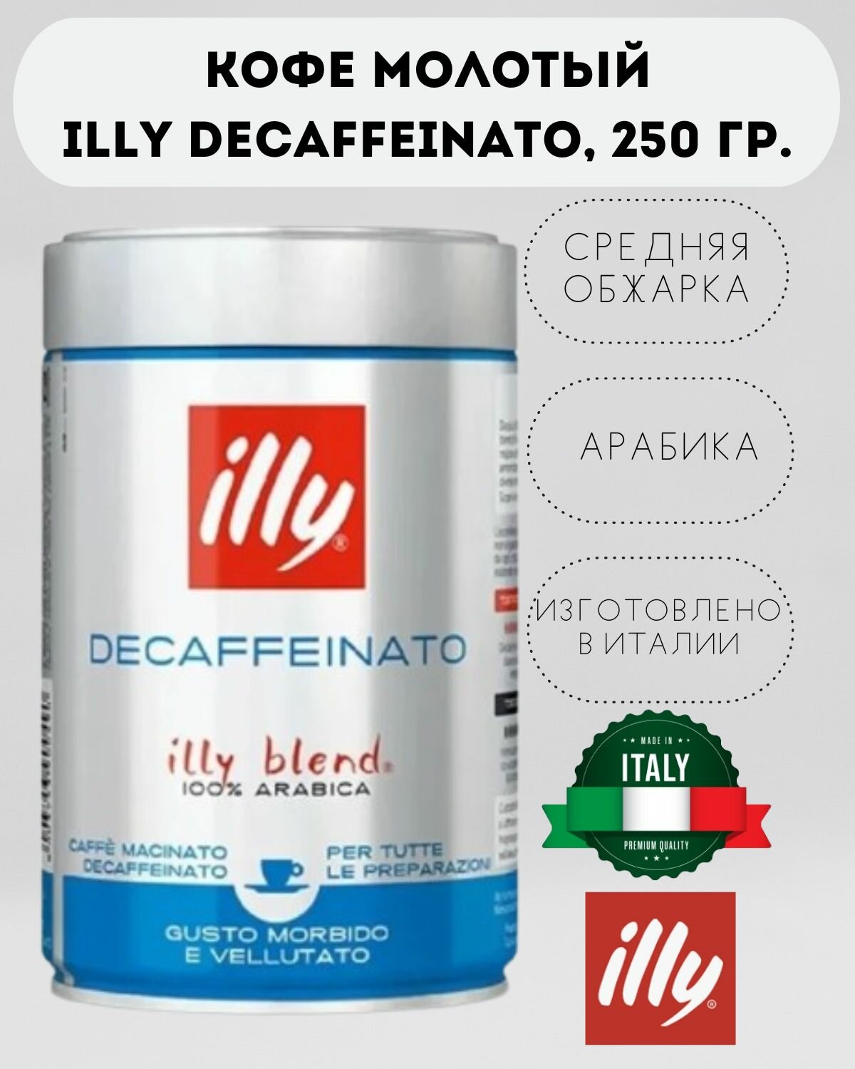 Купить Кофе молотый illy Decaf, без кофеина, банка 250 г (арабика 100%, Италия) с доставкой по всей России. Кофе молотый illy Decaf, без кофеина, банка 250 г (арабика 100%, Италия): сравнение цен, характеристики, фото, актуальное наличие и цены.