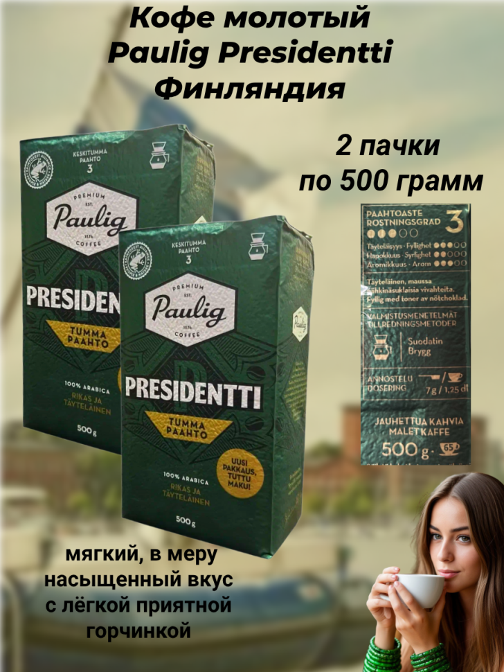 Купить Кофе молотый Paulig Presidentti 500 грамм 2 штуки Финляндия с доставкой по всей России. Кофе молотый Paulig Presidentti 500 грамм 2 штуки Финляндия: сравнение цен, характеристики, фото, актуальное наличие и цены.