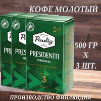 Кофе молотый Paulig PRESIDENTTI ORIGINAL №3 (Финляндия) 500 гр. х 3 шт.
