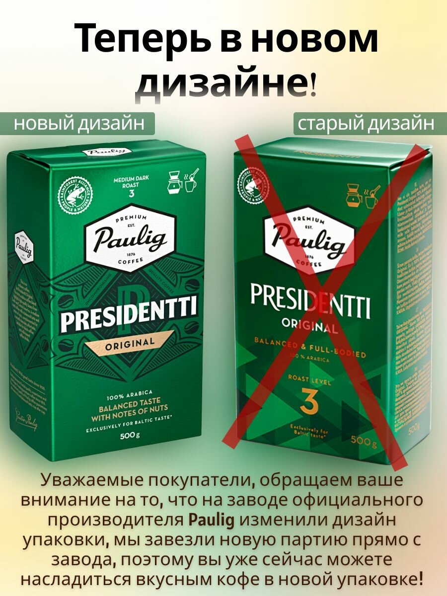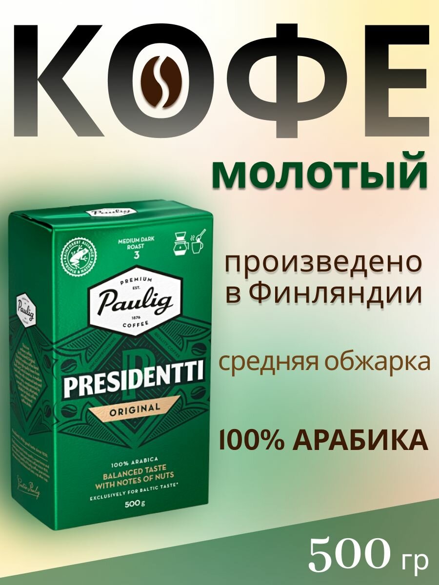 Кофе молотый Paulig «Presidentti Original», средняя обжарка, 100% Арабика, 500г: сравнение цен, характеристики, фото, актуальное наличие и цены.
