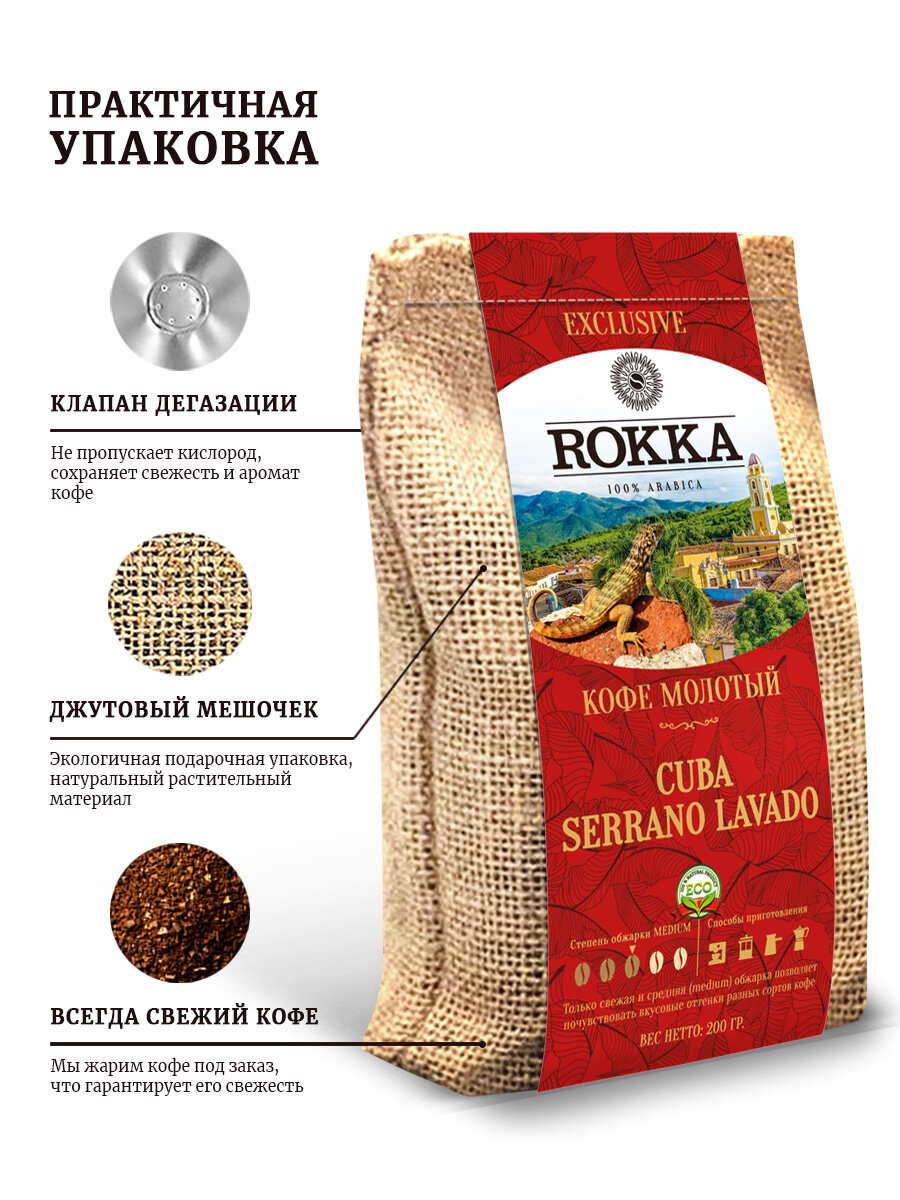 Купить Кофе молотый ROKKA «Куба Серрано Лавадо»(Cuba) 100% арабика, средняя обжарка, 200г, с доставкой по всей России. Кофе молотый ROKKA «Куба Серрано Лавадо»(Cuba) 100% арабика, средняя обжарка, 200г,: сравнение цен, характеристики, фото, актуальное наличие и цены.