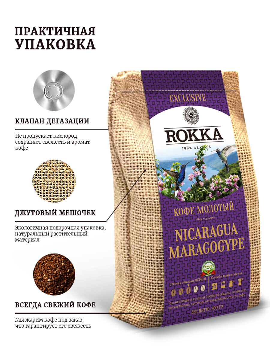 Купить Кофе молотый ROKKA «Марагоджип Никарагуа», средняя обжарка, 100% арабика, 200г. с доставкой по всей России. Кофе молотый ROKKA «Марагоджип Никарагуа», средняя обжарка, 100% арабика, 200г.: сравнение цен, характеристики, фото, актуальное наличие и цены.