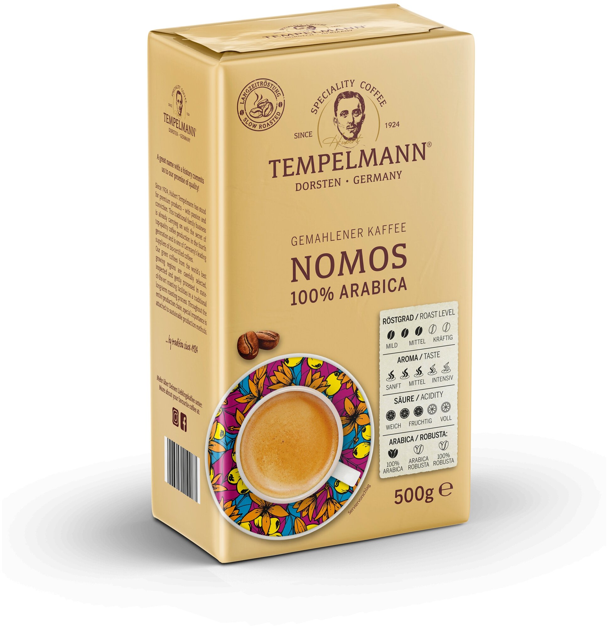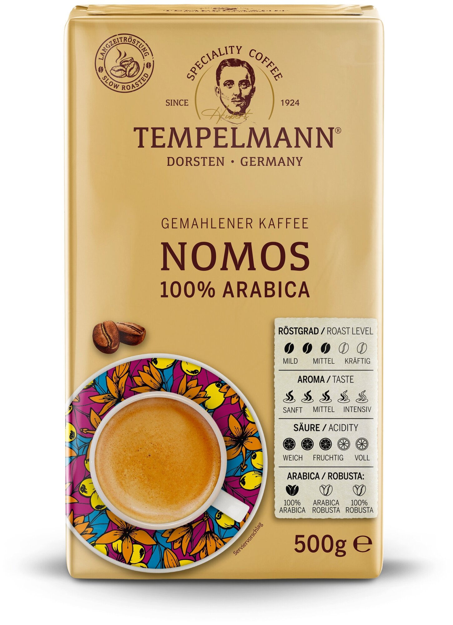 Купить Кофе молотый Tempelmann Nomos 100% ARABICA, 500 г. с доставкой по всей России. Кофе молотый Tempelmann Nomos 100% ARABICA, 500 г.: сравнение цен, характеристики, фото, актуальное наличие и цены.