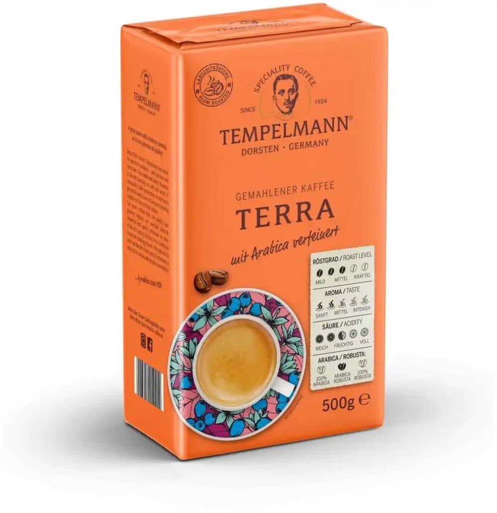 Купить Кофе молотый Tеmpelmann Terra 500 г, 2 шт с доставкой по всей России. Кофе молотый Tеmpelmann Terra 500 г, 2 шт: сравнение цен, характеристики, фото, актуальное наличие и цены.