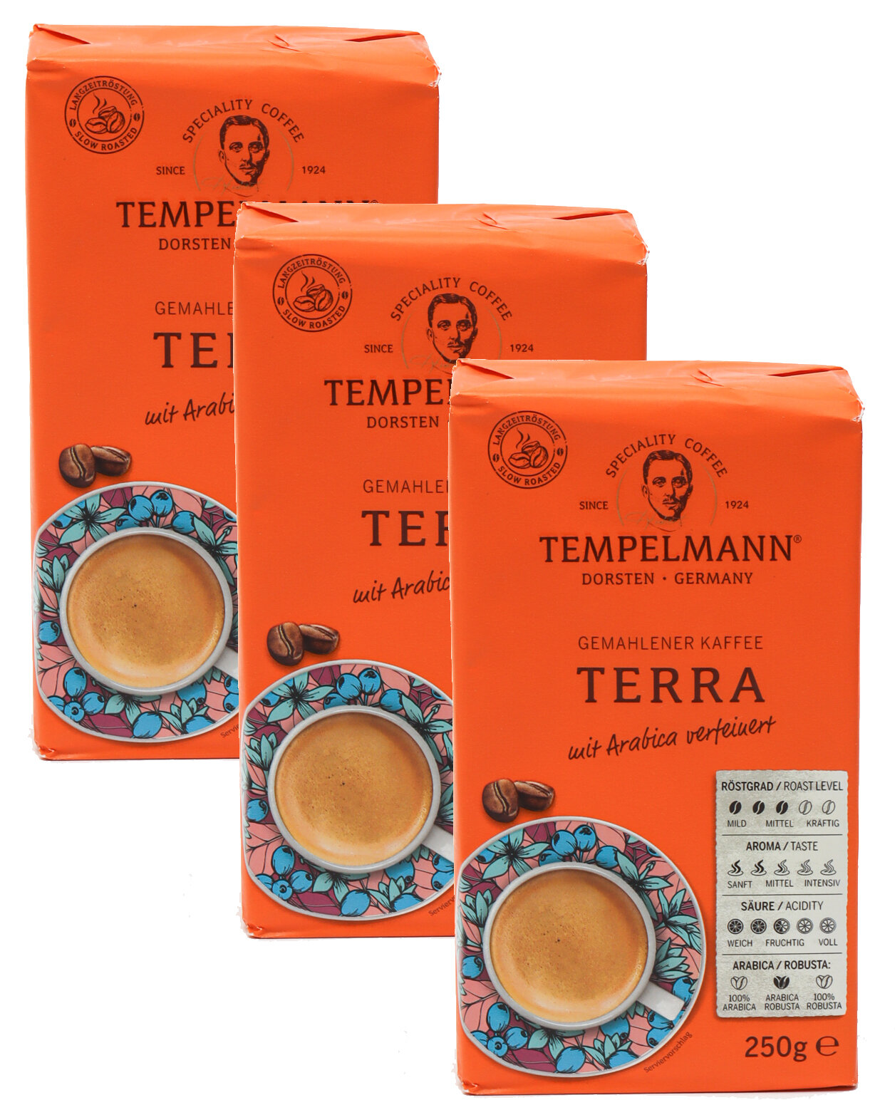 Купить Кофе молотый Tеmpelmann TERRA (Германия) 250 гр. х 3 шт. с доставкой по всей России. Кофе молотый Tеmpelmann TERRA (Германия) 250 гр. х 3 шт.: сравнение цен, характеристики, фото, актуальное наличие и цены.
