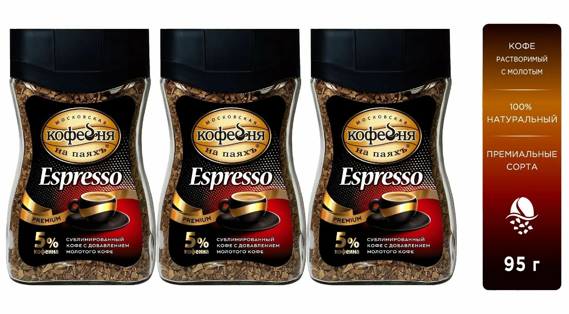 Кофе молотый в растворимом «Эспрессо» Московская Кофейня на паяхъ, 95г х 3шт: сравнение цен, характеристики, фото, актуальное наличие и цены.