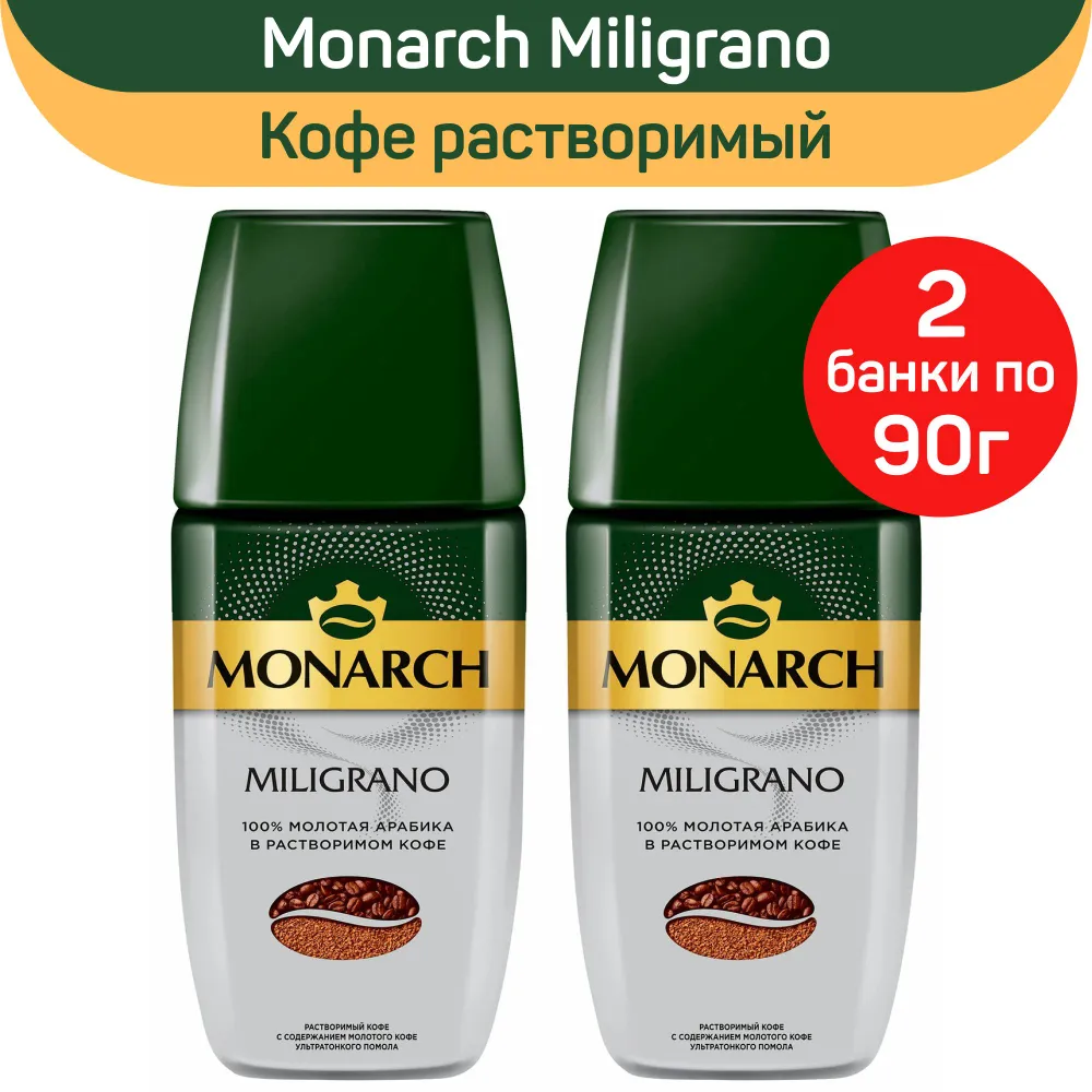 Кофе Monarch «Miligrano», с молотым, 90г, стеклянная банка, 2шт: сравнение цен, характеристики, фото, актуальное наличие и цены.