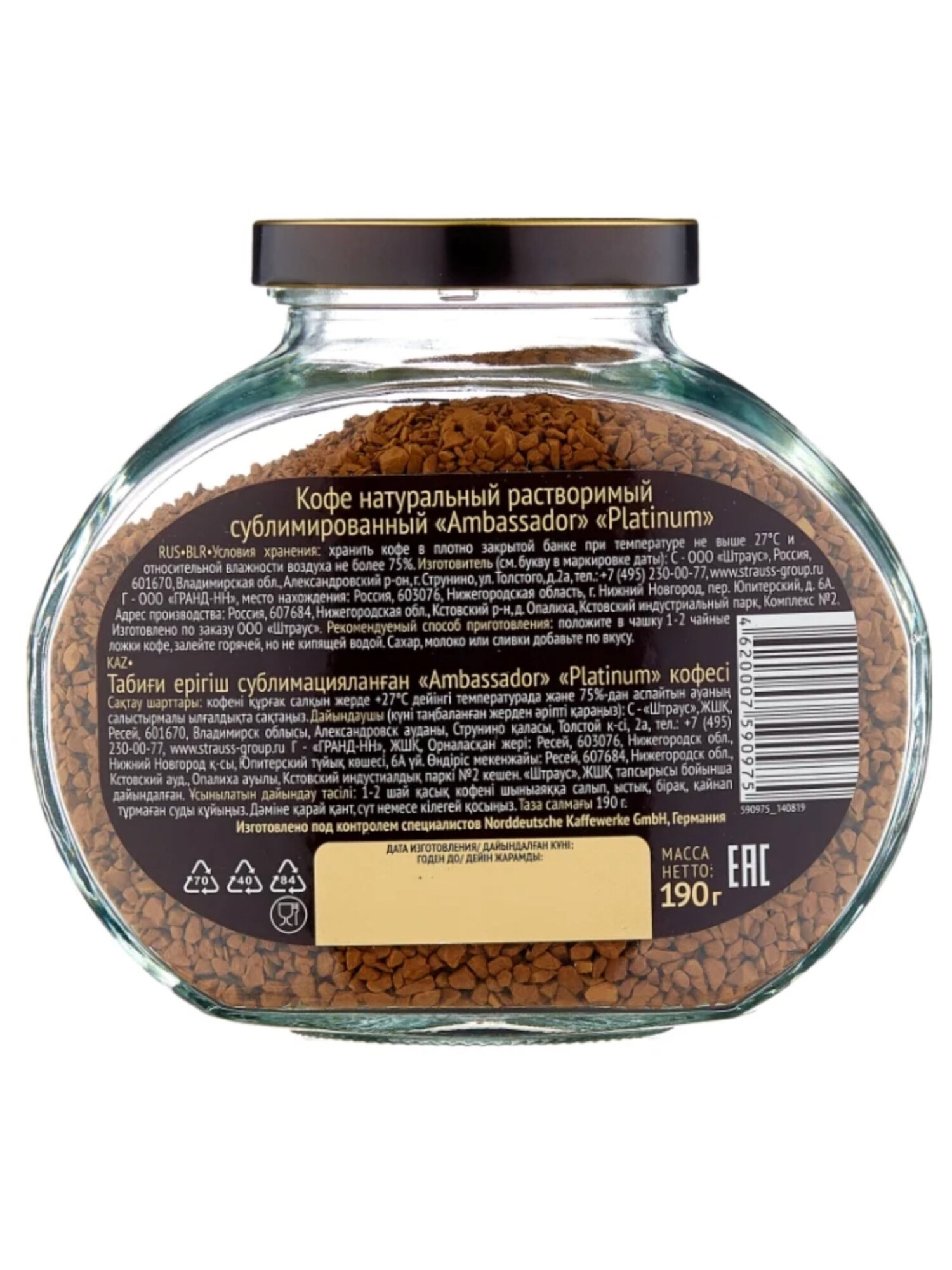 Купить Кофе растворимый Ambassador Platinum 190 г x 2 шт с доставкой по всей России. Кофе растворимый Ambassador Platinum 190 г x 2 шт: сравнение цен, характеристики, фото, актуальное наличие и цены.