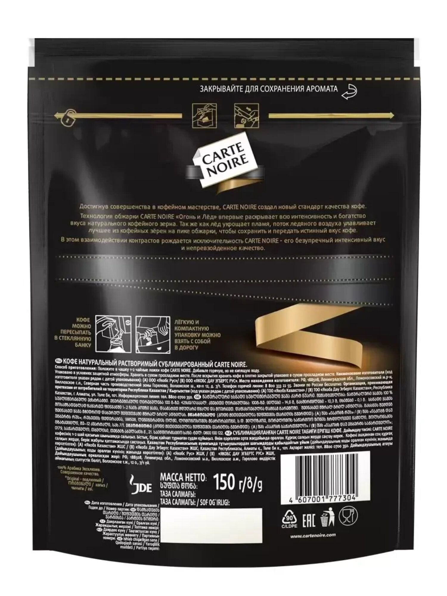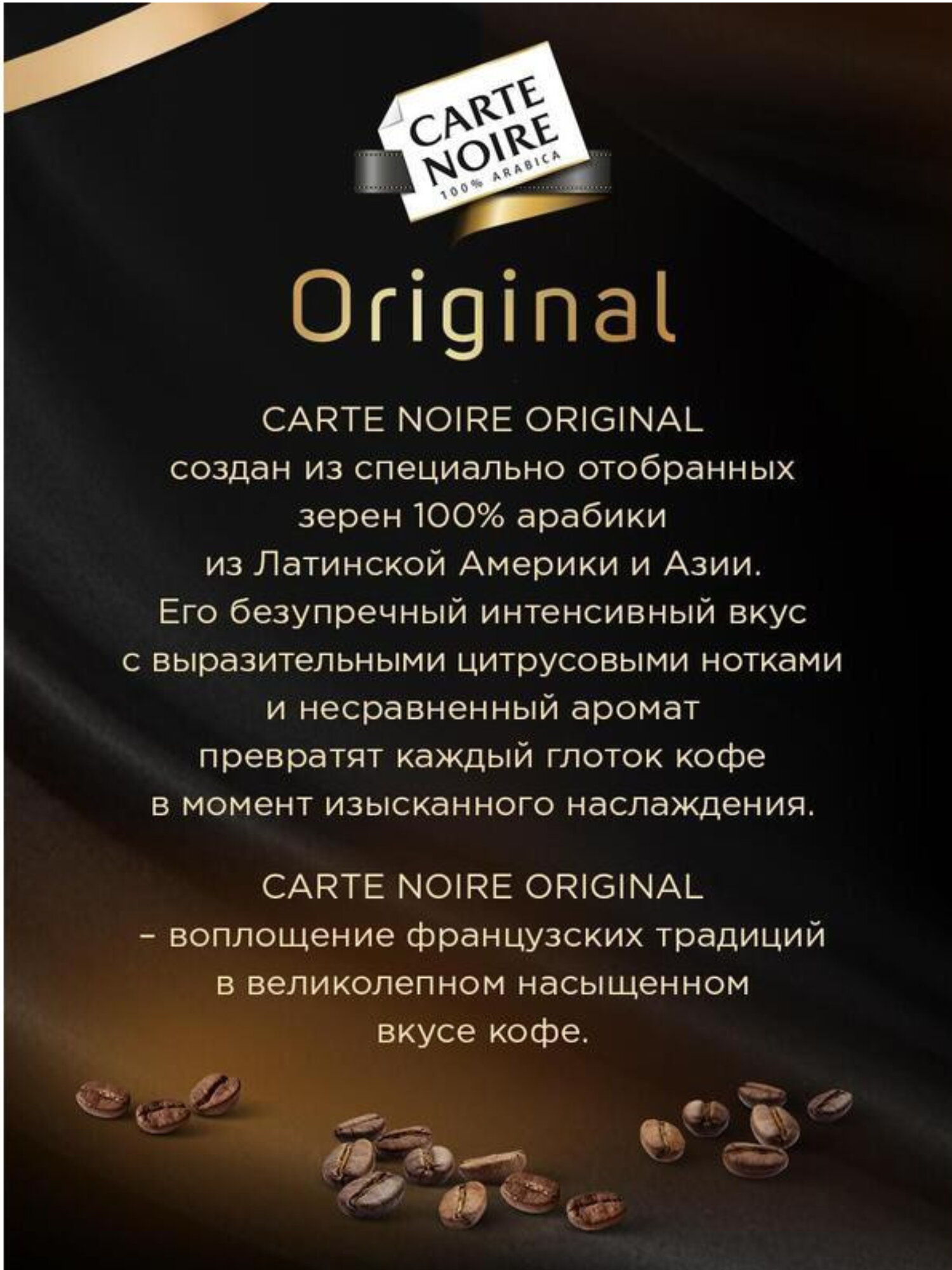 | Дополнительная информация | способ приготовления: положите в чашку 1-2 чайные ложки кофе carte noire, добавьте горячую, но не кипящую воду; хранить в сухом прохладном месте |