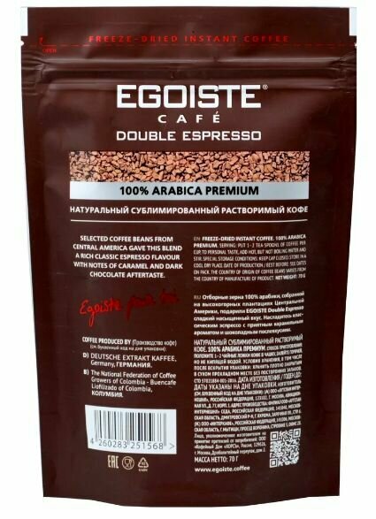 Кофе растворимый EGOISTE Double Espresso, 70г х 3шт: сравнение цен, характеристики, фото, актуальное наличие и цены.