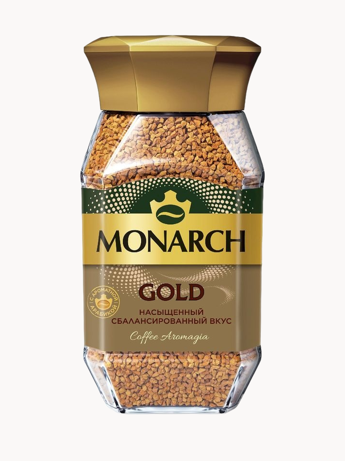 Кофе Monarch Gold создан из специально отобранных зёрен мягкой обжарки и подарит вам насыщенный сбалансированный вкус и утончённый аромат