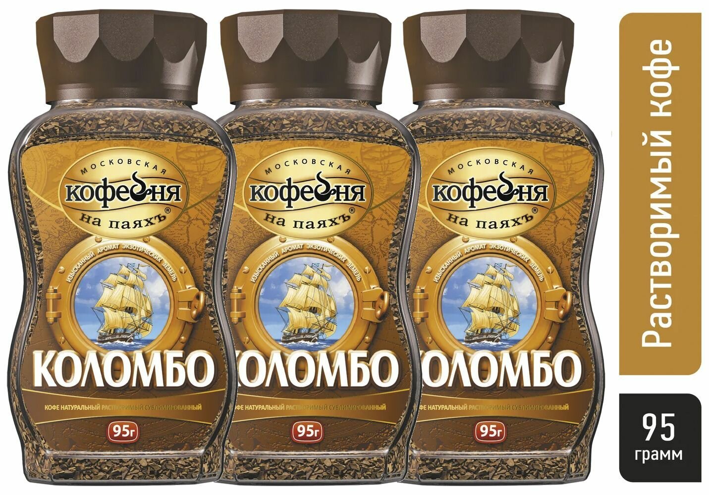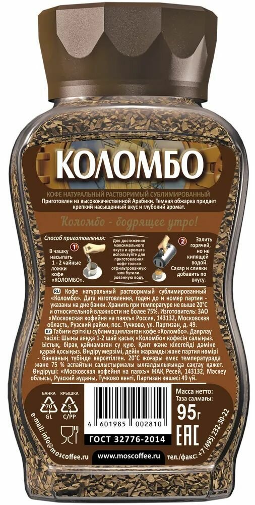 | Состав | Кофе натуральный растворимый сублимированный, кофе натуральный жаренный молотый. 100% Арабика |