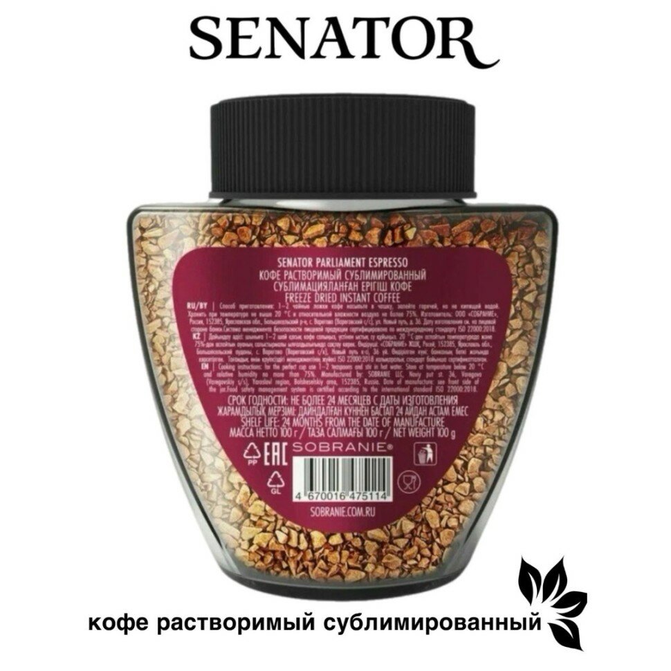 Купить Кофе растворимый Senator Parlament Espresso 100 грамм 2 штуки с доставкой по всей России. Кофе растворимый Senator Parlament Espresso 100 грамм 2 штуки: сравнение цен, характеристики, фото, актуальное наличие и цены.