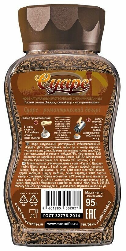 Купить Кофе растворимый Суаре Московская Кофейня на паяхъ, 95г х 3шт с доставкой по всей России.