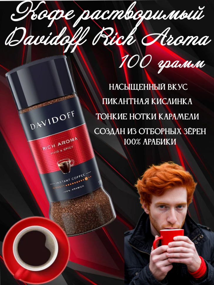 Купить Кофе растворимый сублимированный Davidoff Rich Aroma 100 грамм в стеклянной банке с доставкой по всей России. Кофе растворимый сублимированный Davidoff Rich Aroma 100 грамм в стеклянной банке: сравнение цен, характеристики, фото, актуальное наличие и цены.