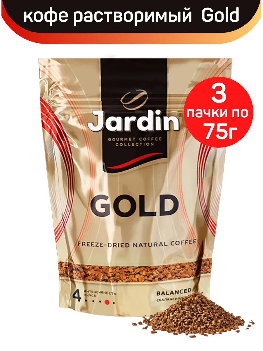 Кофе растворимый сублимированный Jardin Gold, пакет, 3 шт по 75г: сравнение цен, характеристики, фото, актуальное наличие и цены.