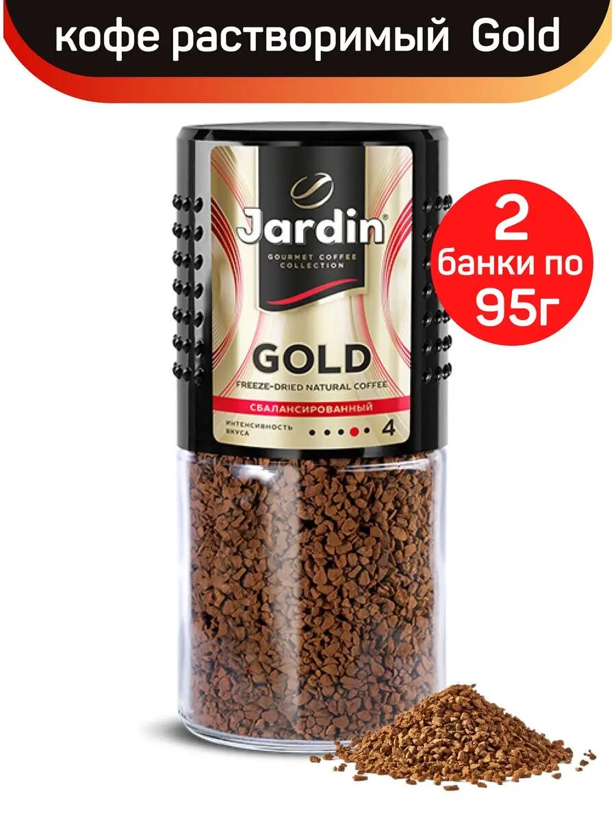 Кофе растворимый сублимированный Jardin Gold, стеклянная банка, 2 шт по 95 г: сравнение цен, характеристики, фото, актуальное наличие и цены.