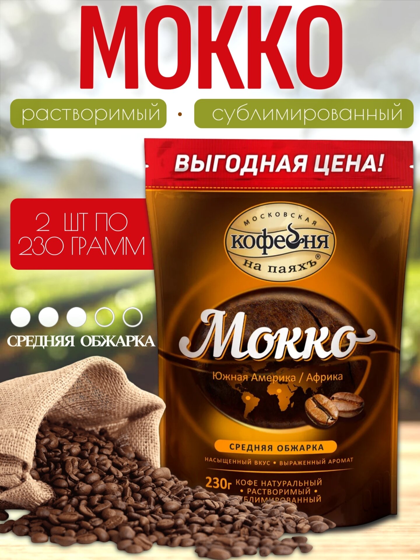 Kофе рaстворимый сублимированный «Мокко», 2 шт по 230 гр, Московская кофейня на паяхъ: сравнение цен, характеристики, фото, актуальное наличие и цены.
