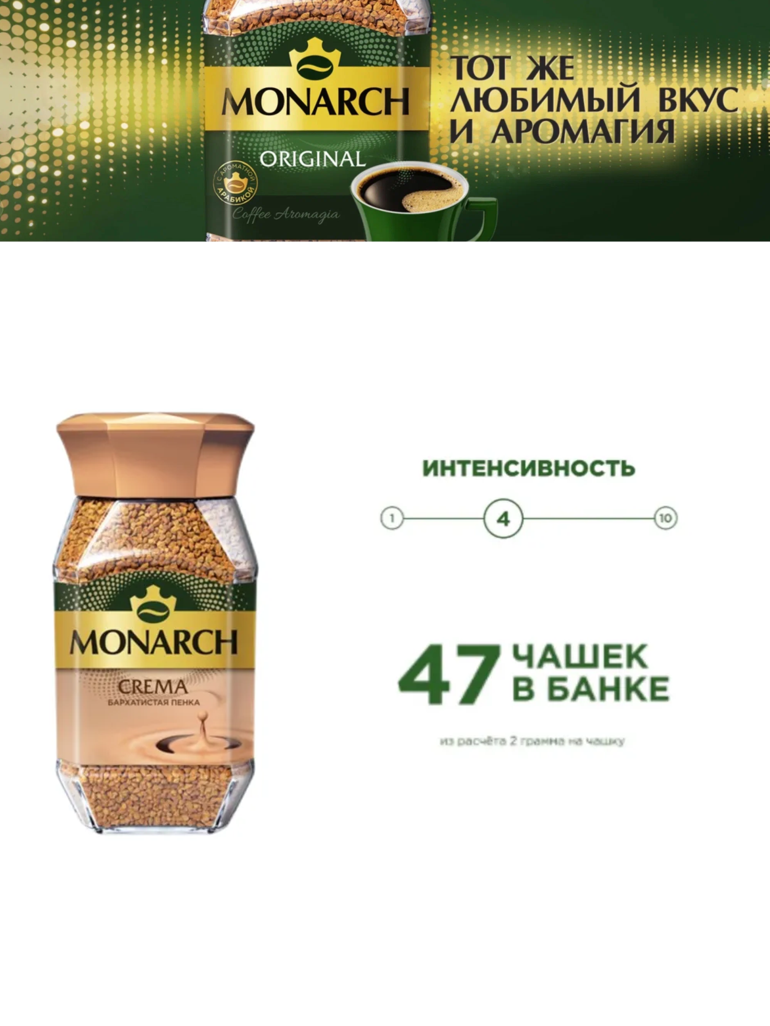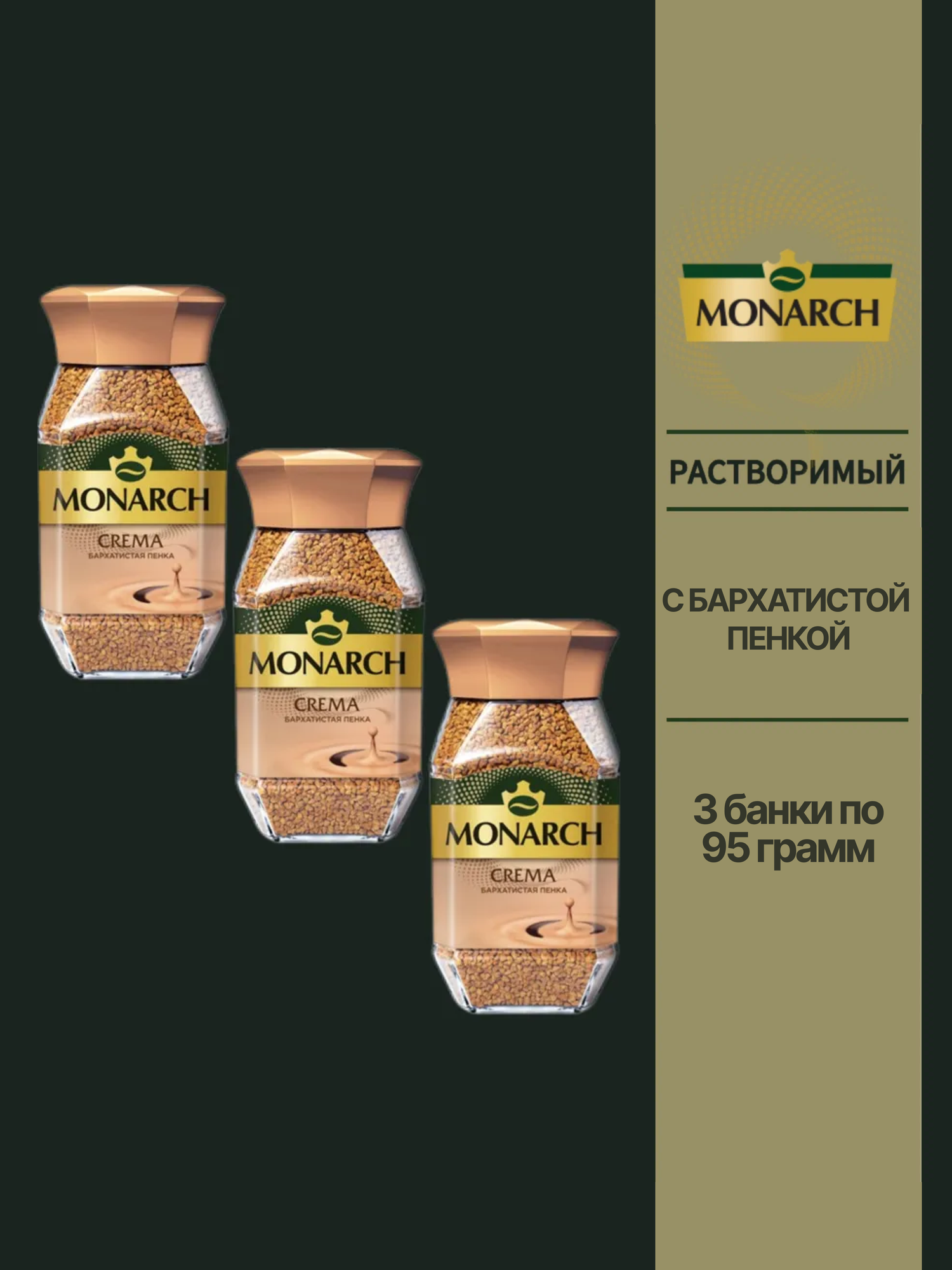 Купить Кофе растворимый сублимированный Monarch Crema, 3 шт по 95 гр с доставкой по всей России. Кофе растворимый сублимированный Monarch Crema, 3 шт по 95 гр: сравнение цен, характеристики, фото, актуальное наличие и цены.