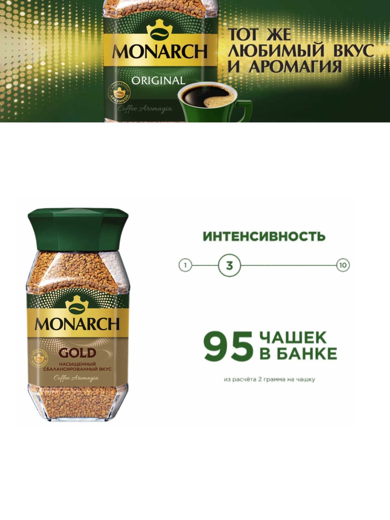 Купить Кофе растворимый сублимированный Monarch Gold, 2 шт по 190 гр с доставкой по всей России. Кофе растворимый сублимированный Monarch Gold, 2 шт по 190 гр: сравнение цен, характеристики, фото, актуальное наличие и цены.