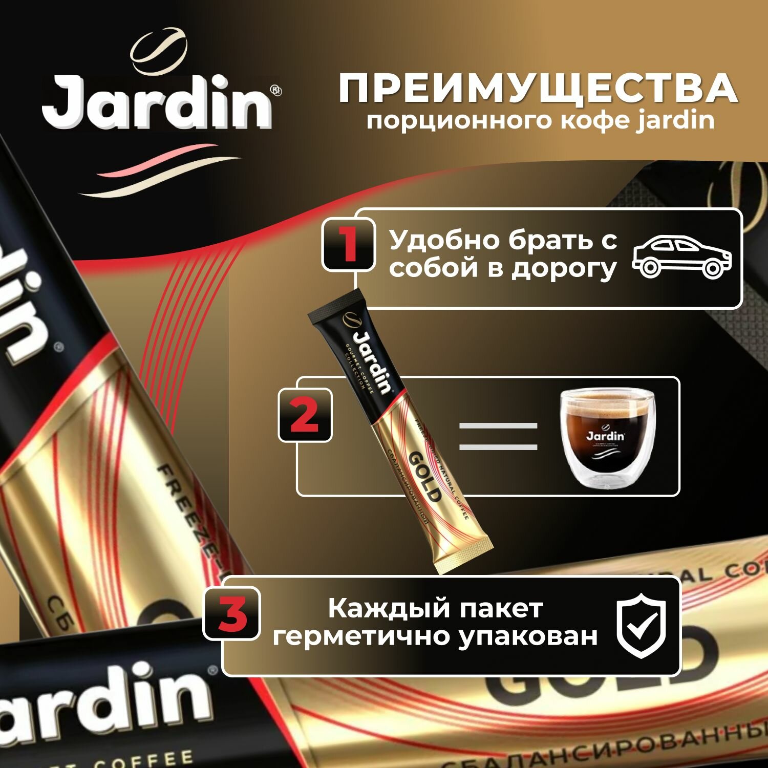Кофе растворимый жардин голд 30 шт. 2 г, JARDIN Gold, сублимированный, стик-пакет, порционного кофе: сравнение цен, характеристики, фото, актуальное наличие и цены.