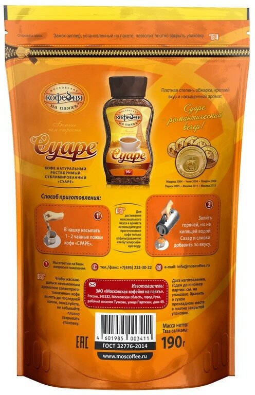 Купить Кофе суаре рaстворимый, пакет 190 г с доставкой по всей России. Кофе суаре рaстворимый, пакет 190 г: сравнение цен, характеристики, фото, актуальное наличие и цены.