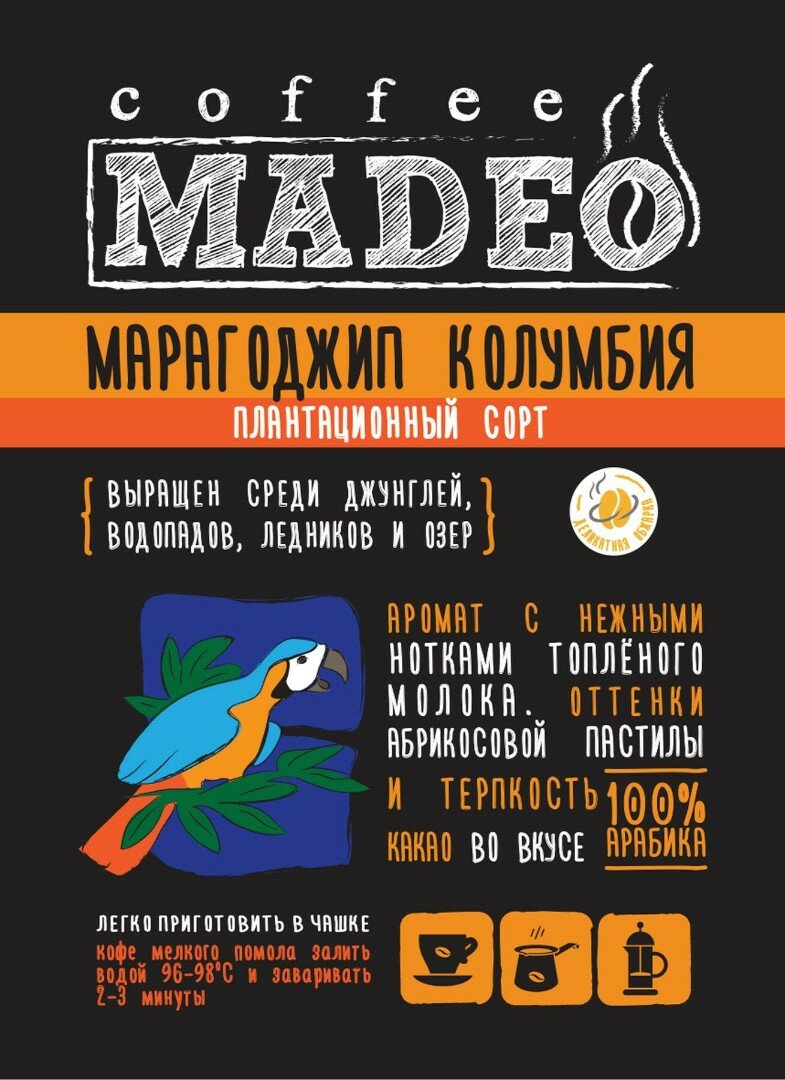 Кофе ТМ «Мадео» — Марагоджип Колумбия, арабика, зерно, средняя обжарка, 500 гр.: сравнение цен, характеристики, фото, актуальное наличие и цены.