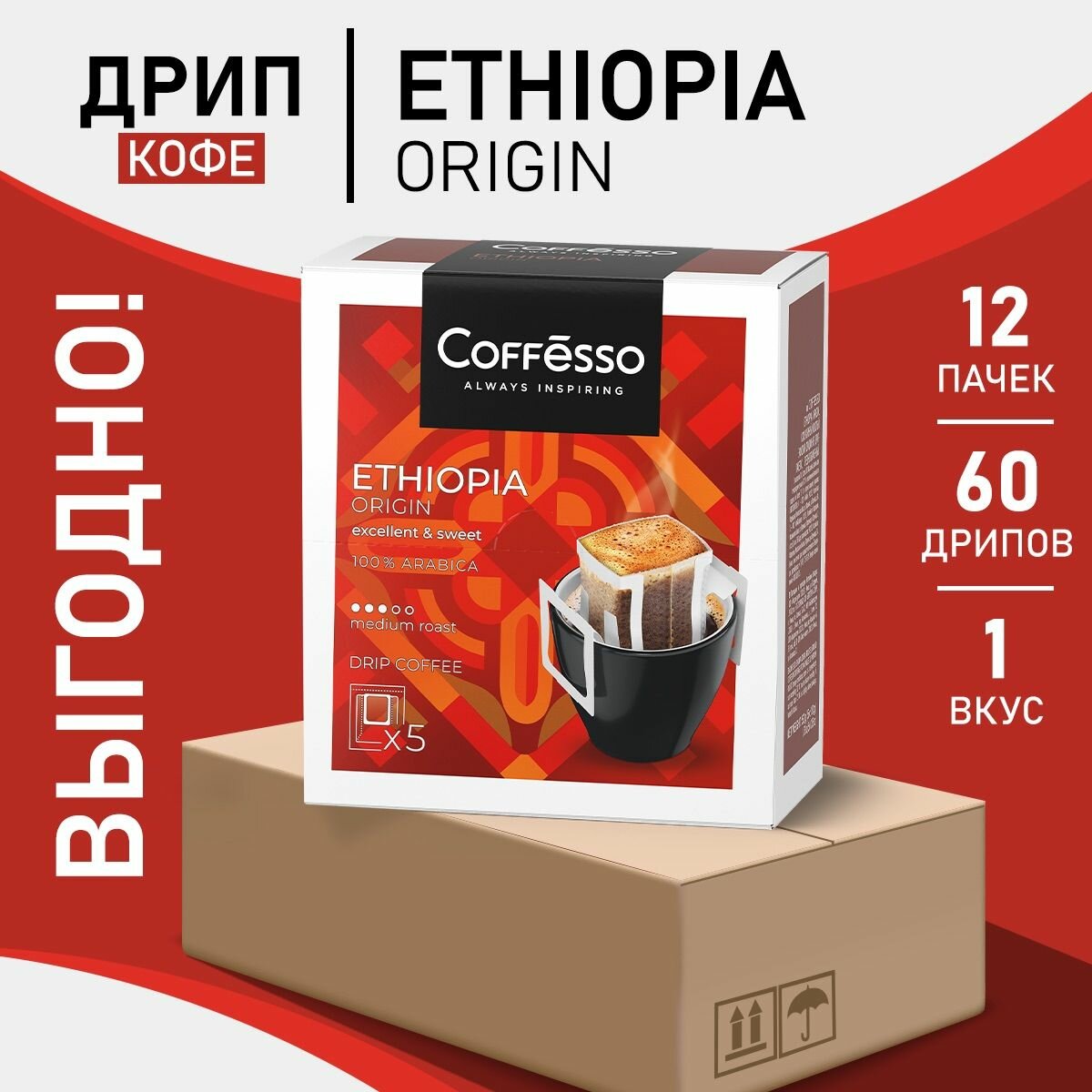 Купить Кофе в дрип-пакетах Coffesso «Ethiopia Origin» 12 уп х 5 саш с доставкой по всей России. Кофе в дрип-пакетах Coffesso «Ethiopia Origin» 12 уп х 5 саш: сравнение цен, характеристики, фото, актуальное наличие и цены.
