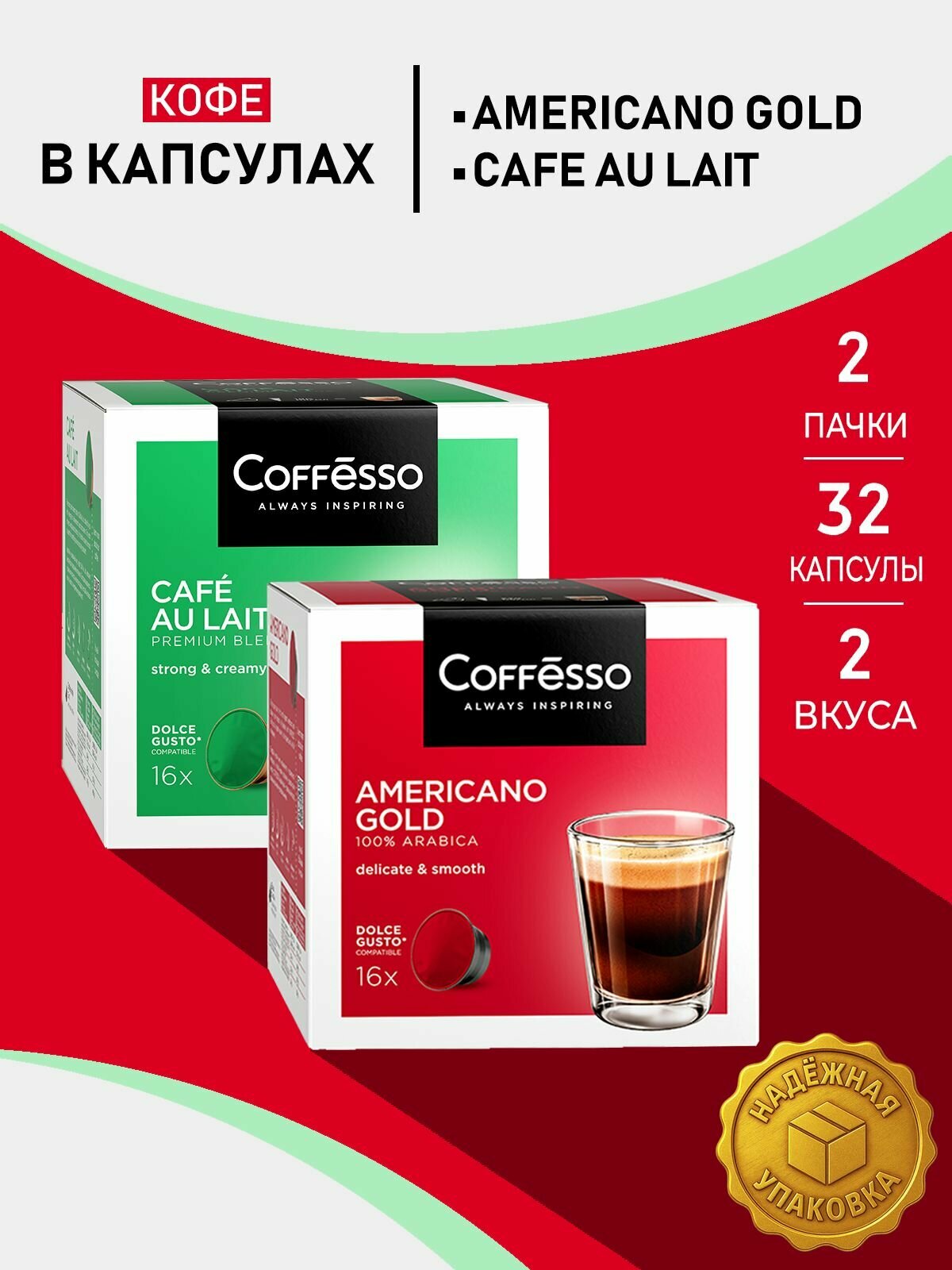 Кофе в капсулах Coffesso Americano Gold + Cafe Au Lait I набор, 2 уп х 16 капсул: сравнение цен, характеристики, фото, актуальное наличие и цены.