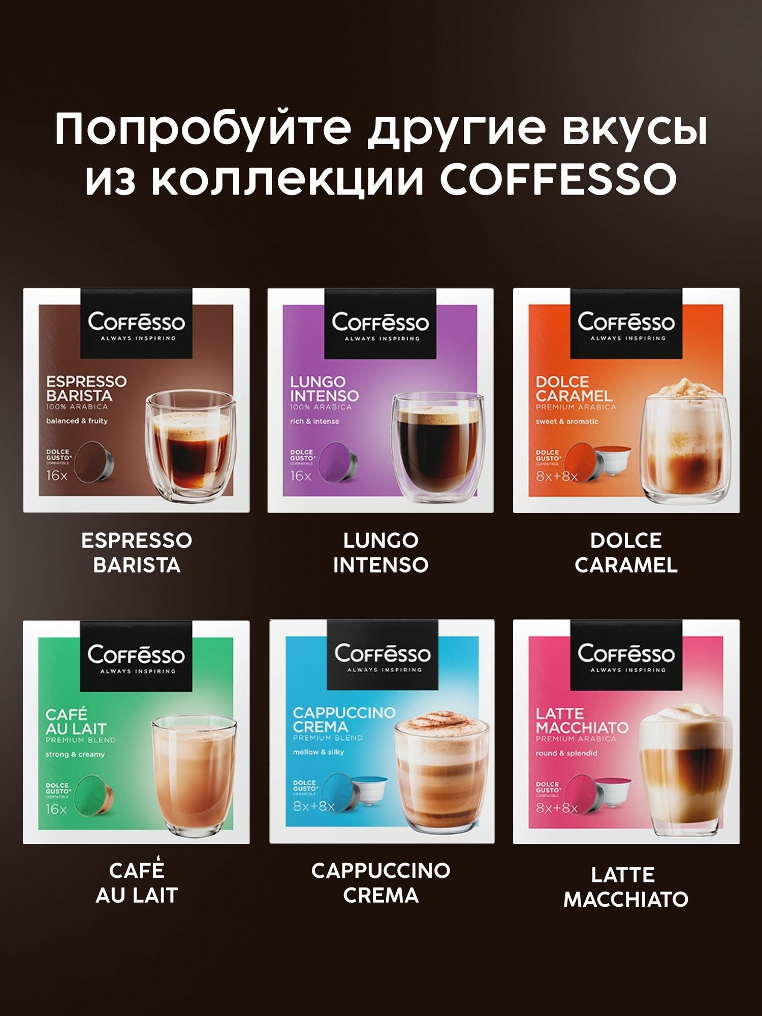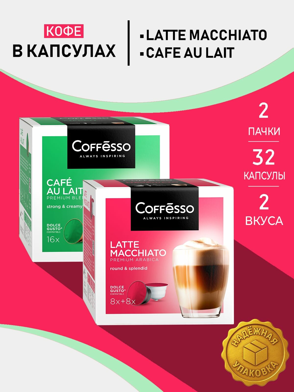 Кофе в капсулах Coffesso Cafe Au Lait I + Latte Macchiato, 2 уп х 16 капсул: сравнение цен, характеристики, фото, актуальное наличие и цены.