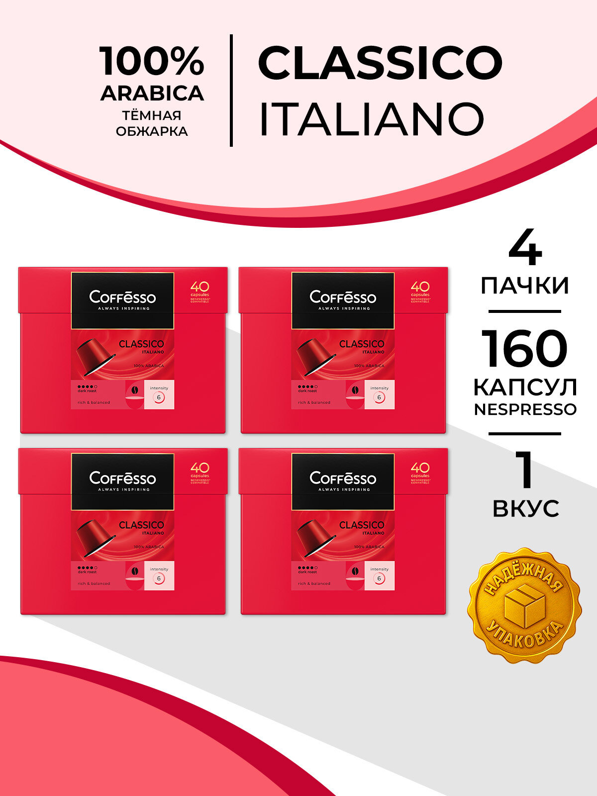 Кофе в капсулах Coffesso Classico Italiano 4 упаковки по 40 капсул: сравнение цен, характеристики, фото, актуальное наличие и цены.