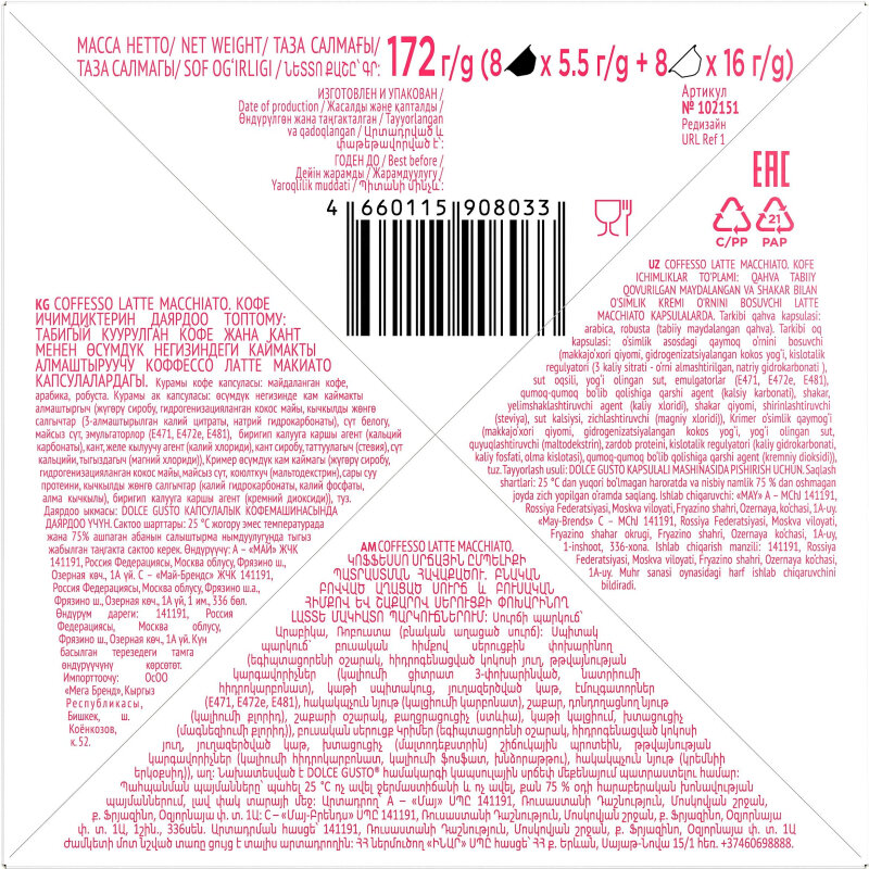 Купить Кофе в капсулах Coffesso Latte Macchiato, 10,75гx16шт/уп (DG) с доставкой по всей России. Кофе в капсулах Coffesso Latte Macchiato, 10,75гx16шт/уп (DG): сравнение цен, характеристики, фото, актуальное наличие и цены.