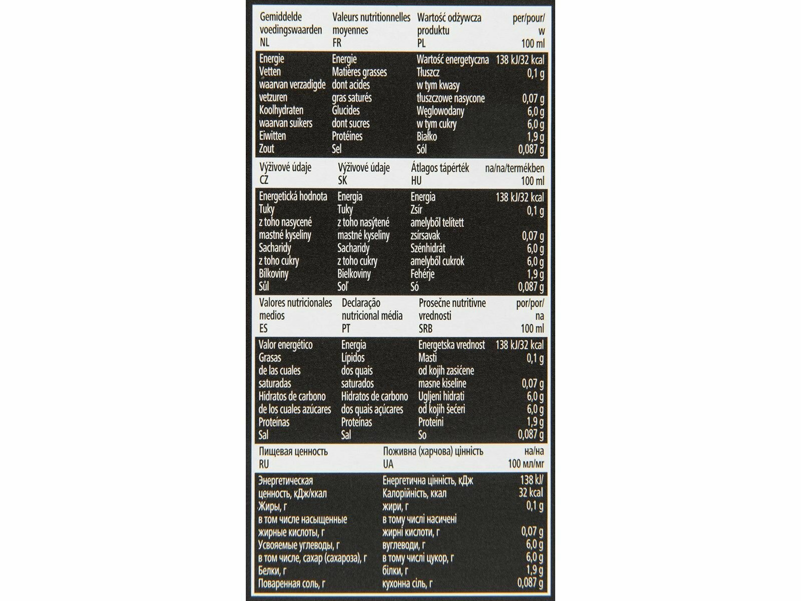 | Не содержит | ГМО, ароматизаторы, глютен, искусственные ароматизаторы, искусственные красители, кофеин, крахмал, пальмовое масло, соль |