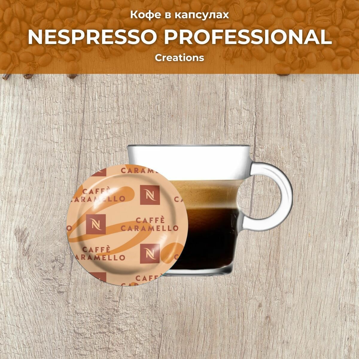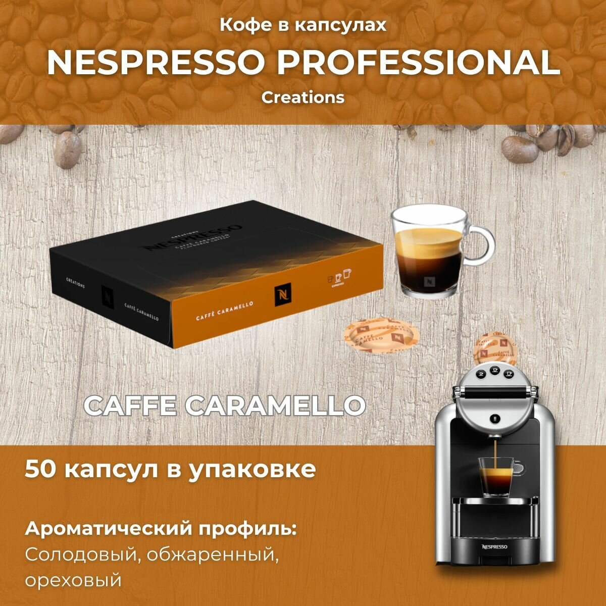Кофе в капсулах Espresso Caramel Nespresso Professional подходит для использования в кофемашинах Nespresso Professional.